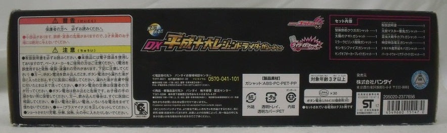商品説明 | 「仮面ライダーエグゼイド」のゲームソフト型変身キーアイテムを再現した『DXライダーガシャットシリーズ』より、 「仮面ライダークウガ」から「仮面ライダーディケイド」までの平成ライダー10人をイメージしたデザインの変身アイテムセット『DX平成十大レジェンドライダーガシャットセット』が登場。 各ライダーをイメージした、オリジナルのゲームソフト型アイテムの設定となっている「レジェンドライダーガシャット」は、 別売りの変身ベルト「DXゲーマドライバー」にセットすることで、各ライダーのビジュアルが浮かび上がりオリジナルのレベルアップ変身音を楽しむことができます。 使用電池:LR44ボタン電池×各3(別売) 対象年齢:3歳以上 ※中古商品に関しまして、電池・電池残量の有無等の保証は致しておりません。予めご了承下さ |