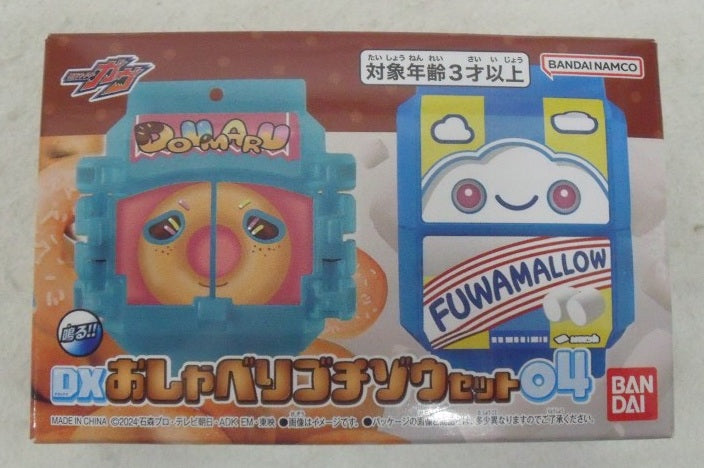 | 商品説明 | 「DXおしゃべりゴチゾウセット04」には、仮面ライダーヴァレンがドーマルフォームの変身に使用する「ドーマルゴチゾウ」と、 仮面ライダーガヴがふわマロフォームの変身に使用する「ふわマロゴチゾウ」を収録。 使用電池:LR44ボタン電池×4(別売) 対象年齢:3歳以上 |