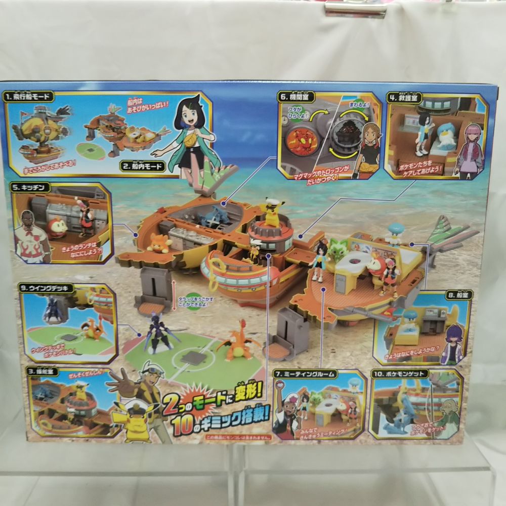 | 商品説明 | 2つのモードに変形! ブレイブアサギ号で冒険しよう! ・飛行船モード、船内モードの2つのモードに変形! ・モンコレ※でたっぷりあそべる10のギミック搭載!(※モンコレは別売りです) ・飛行船モードではTVアニメ「ポケットモンスター」に登場するブレイブアサギ号を再現! モンコレを乗せて、てころがして遊ぼう! ・船内モードでは、操舵室、救護室、キッチン、機関室、 ミーティングルーム、船室などTVアニメ「ポケットモンスター」に登場するシーンを再現出来るぞ。 ウイングデッキでポケモンバトルや、つりざおでポケモンゲットなど君のモンコレでたくさん遊ぼう! 対象年齢:4歳以上 |
