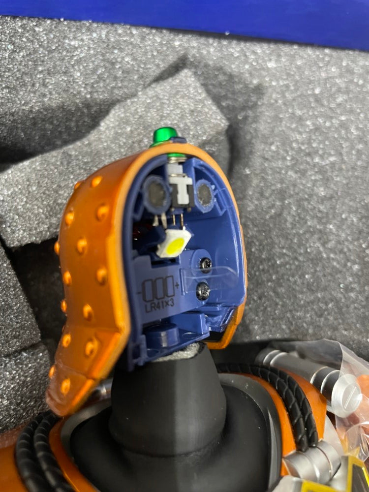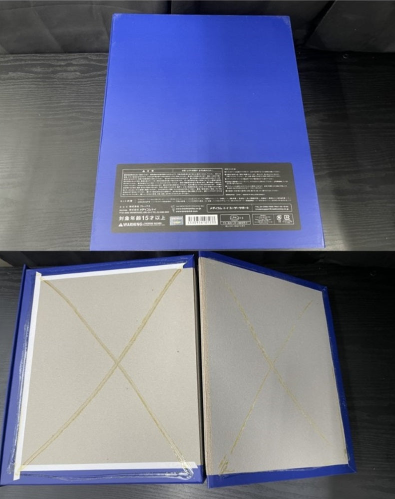 状態 | 開封品となります。 左肘、両膝のパーツが剥がれています。(右肘パーツはくっついていますが剥がれそうになっています。)箱裏側の糊付けが剥がれています。 絶縁シートが刺さったままなので発光ギミックの確認はおこなっておりません。 店頭併売品となりますので、売り切れの際はご容赦ください。 |