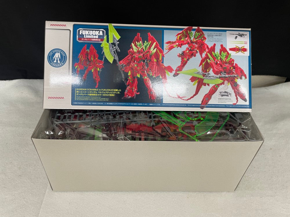 | 商品説明 | 『GUNDAM SCRAMBLE in FUKUOKA』に登場するユニコーンガンダム ペルフェクティビリティがガンダムベース福岡限定カラーになってHGで登場! サイコフレームの成形色には鮮やかなクリアグリーンを採用! ハイパー・ビーム・ジャベリンに加え、アームド・アーマーBS、VN、XC、DEが付属! 全身の可動構造を活かして迫力のポージングを演出! アームド・アーマーBSは展開形態と収納形態を選択可能! 鳥の飾り羽の様な形状の可動式スタビライザーが付属! |