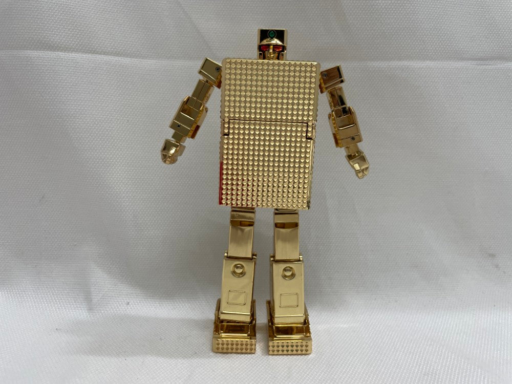 商品説明 | 正義を秘めた輝くボディ!ゴールドライタン!「24金メッキ仕上げ」で再び登場! クリスタルカットモールドで再現されたボディを24金メッキでコート。玩具の域を超えた輝きと高級感を実現しました! ライター形態からロボット形態への変形完全再現。 【商品詳細】 全高:約130mm(ロボ形態時) 材質:ABS、PVC、ダイキャスト製 |