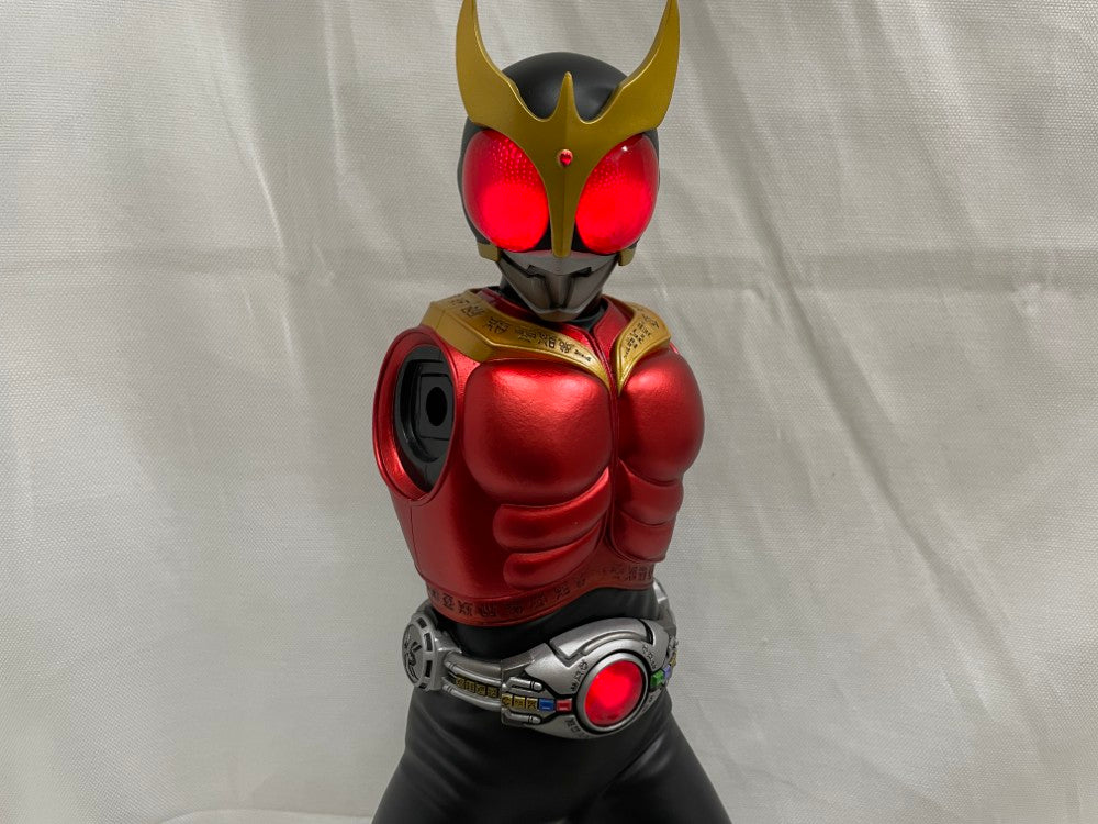 商品説明 | 超変身!今、伝説を熱く塗り変える! 至高のディテールとギミックを兼ね備え、存在感溢れる迫力のスケールでお届けするUAシリーズ。 放映開始より20周年を迎え、平成の第1号ライダーとしても人気の高い「仮面ライダークウガ マイティフォーム」が遂に登場! 約40cmのビッグスケール!ボディに刻まれたリント文字、マスク細部に至るまで徹底的に再現されたディテールは圧倒的な存在感を誇ります。 また、全身に宿る超古代エネルギーをLEDギミックで再現。 スイッチON1でコンパウンドアイズ(眼)、シンボルポイント(額)、アークル(ベルト)がゆっくりと全点灯、 ON2への切り替えでアークルの高速回転発光アクションが発動! 付属のオプションアームの交換により力強い「変身」の他、お馴染みの「サムズアップ」2種類のポージングがお楽しみ頂けます。 クウガの魅力を凝縮した最高峰の立体を是非お手元でお楽しみください。 サイズ:全高約400mm ※電池・電池残量の有無等の保証は致しておりません。予めご了承下さい |