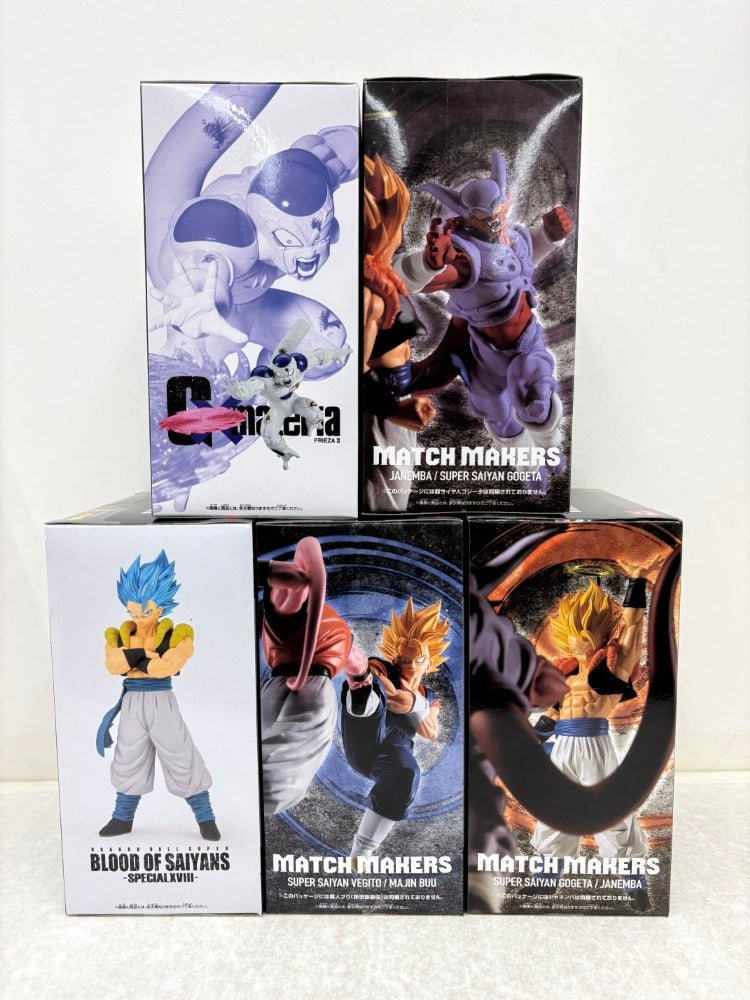 | 商品説明 | 【セット内容】 ベジット/超サイヤ人ゴッド超サイヤ人ゴジータ/超サイヤ人ゴジータ/ジャネンバ/フリーザ MATCH MAKERSシリーズより「超サイヤ人ベジット」が登場! BLOOD OF SAIYANSシリーズで、超サイヤ人ゴッド超サイヤ人ゴジータが登場! MATCH MAKERSシリーズより「超サイヤ人ゴジータ」が登場! MATCH MAKERSシリーズより「ジャネンバ」が登場! クリアパーツとラメ素材を使用したエフェクトフィギュアシリーズ「G×materia」からフリーザが登場! 【商品詳細】 超サイヤ人ベジット サイズ:約11cm 超サイヤ人ゴッド超サイヤ人ゴジータ サイズ:約18cm 超サイヤ人ゴジータ サイズ:約17cm ジャネンバ サイズ:約16cm フリーザ サイズ:約13cm |