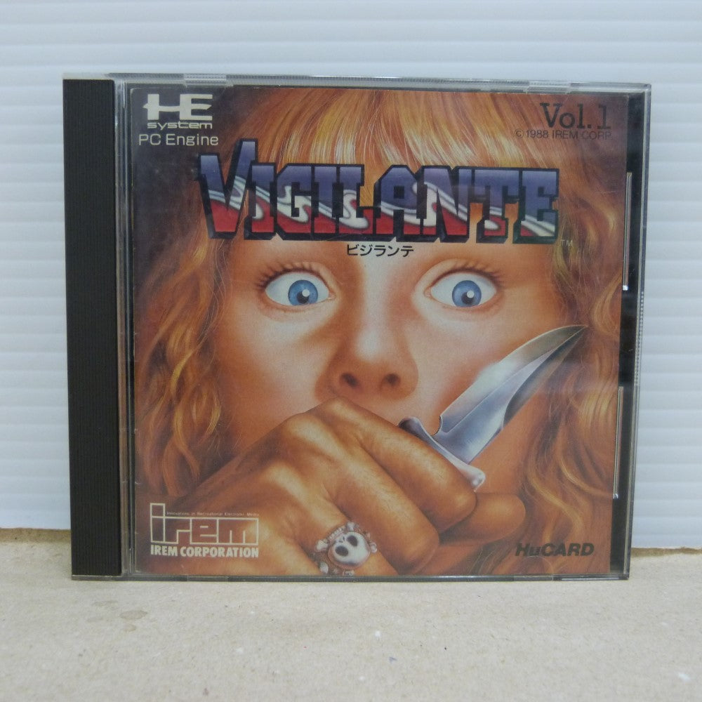 | 商品説明 | アイレムより1989年1月14日にPCエンジン用ソフトとして発売された格闘アクションゲーム。 アーケードからの移植作品。タイトルの意味は英語で『自警団』を表している。 全5ステージからなり、各ステージボスを倒してステージクリアとなる。 ボス敵は一定時間毎に体力が回復していくので、これがゲームの難易度を押し上げる要因になっている。 地面に落ちているヌンチャクを拾うことにより、攻撃に利用することができる。 |